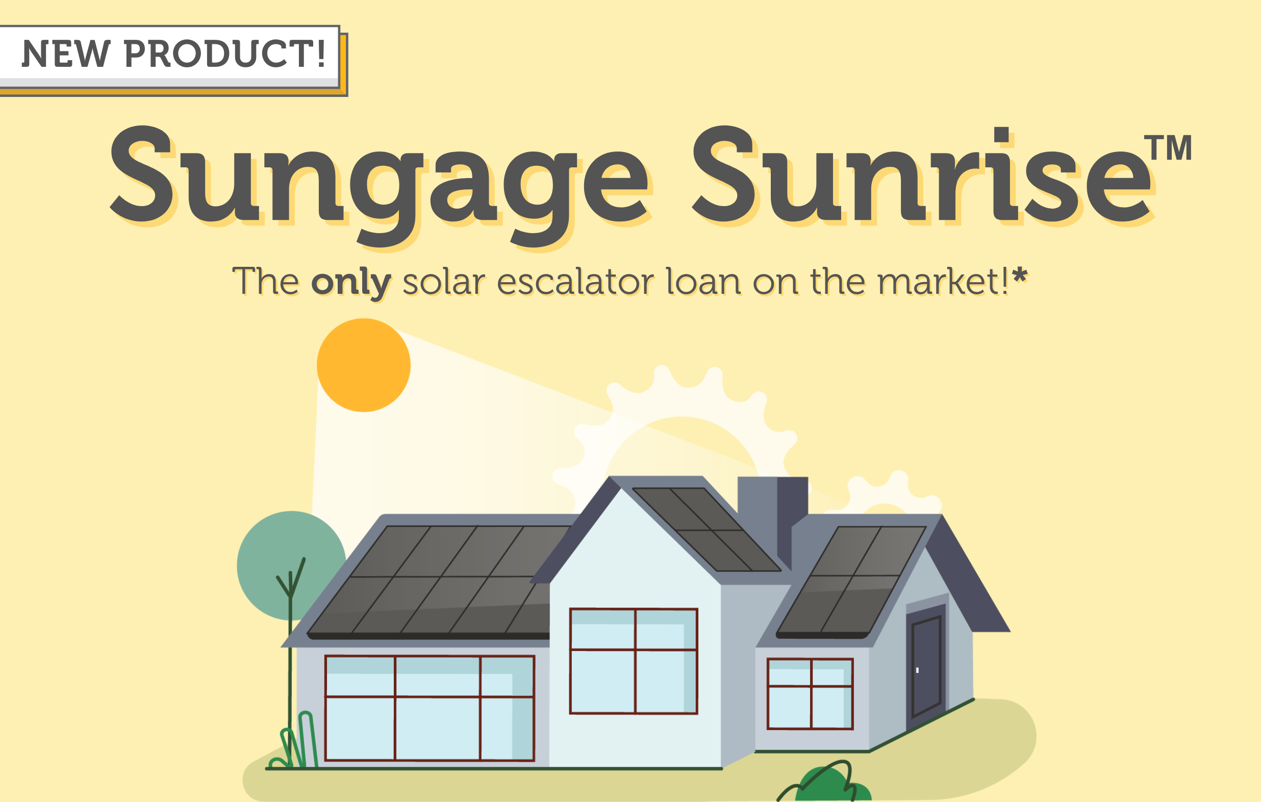 Introducing Sungage Sunrise™, the only solar escalator loan on the market.* This innovative product is designed to offer homeowners the lowest possible monthly payment of Sungage loan products while staying ahead of rising utility rates.